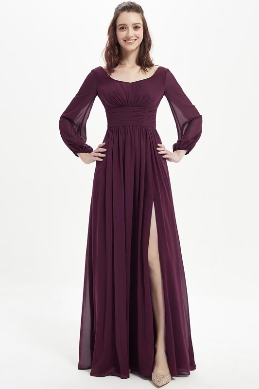 long sleeve burgundy bridesmaid dress