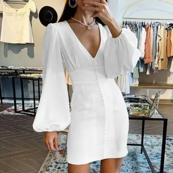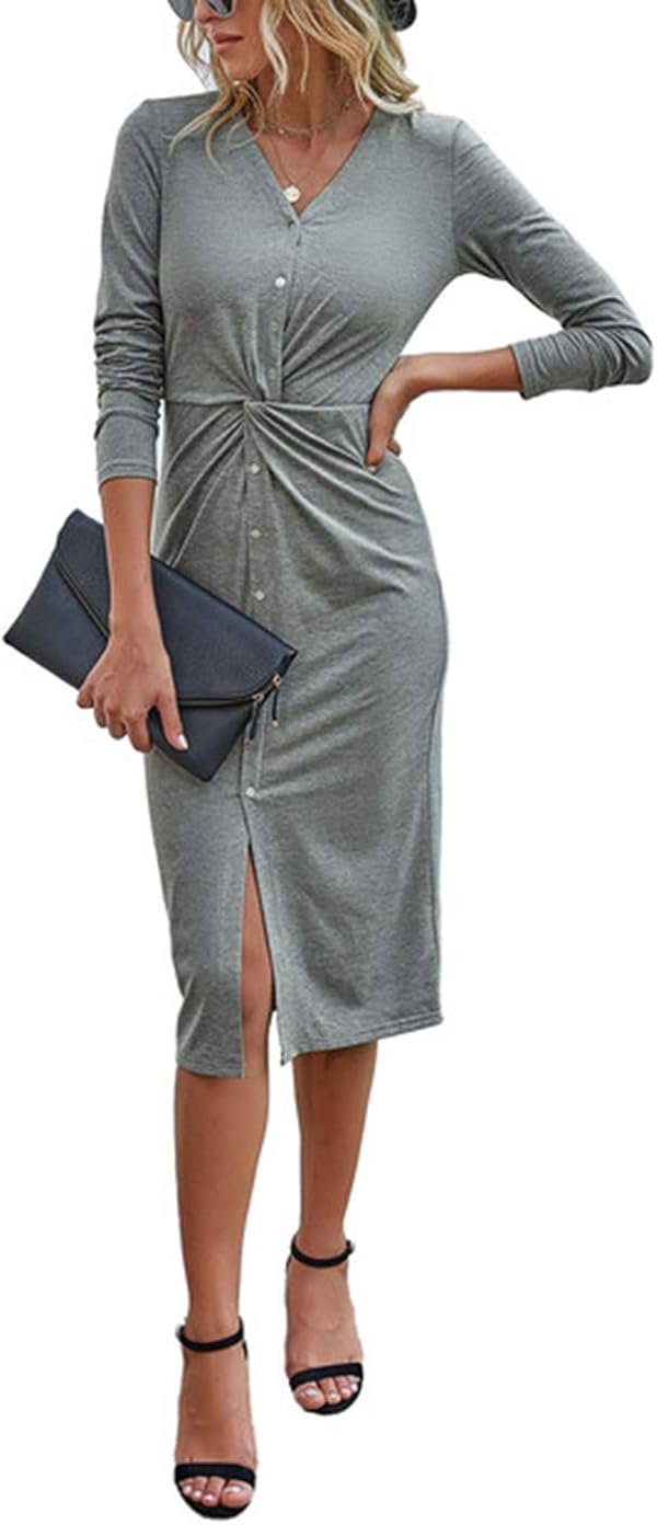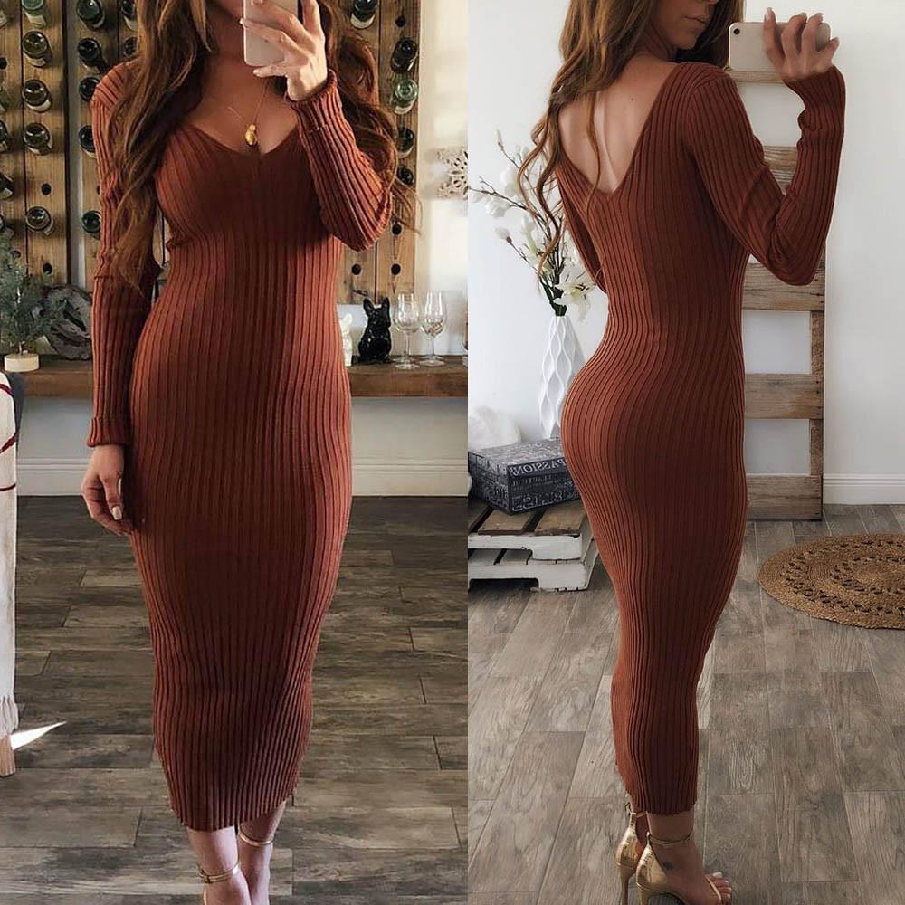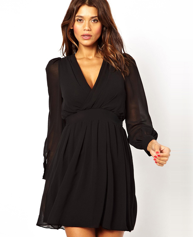 long sleeve v neck dress