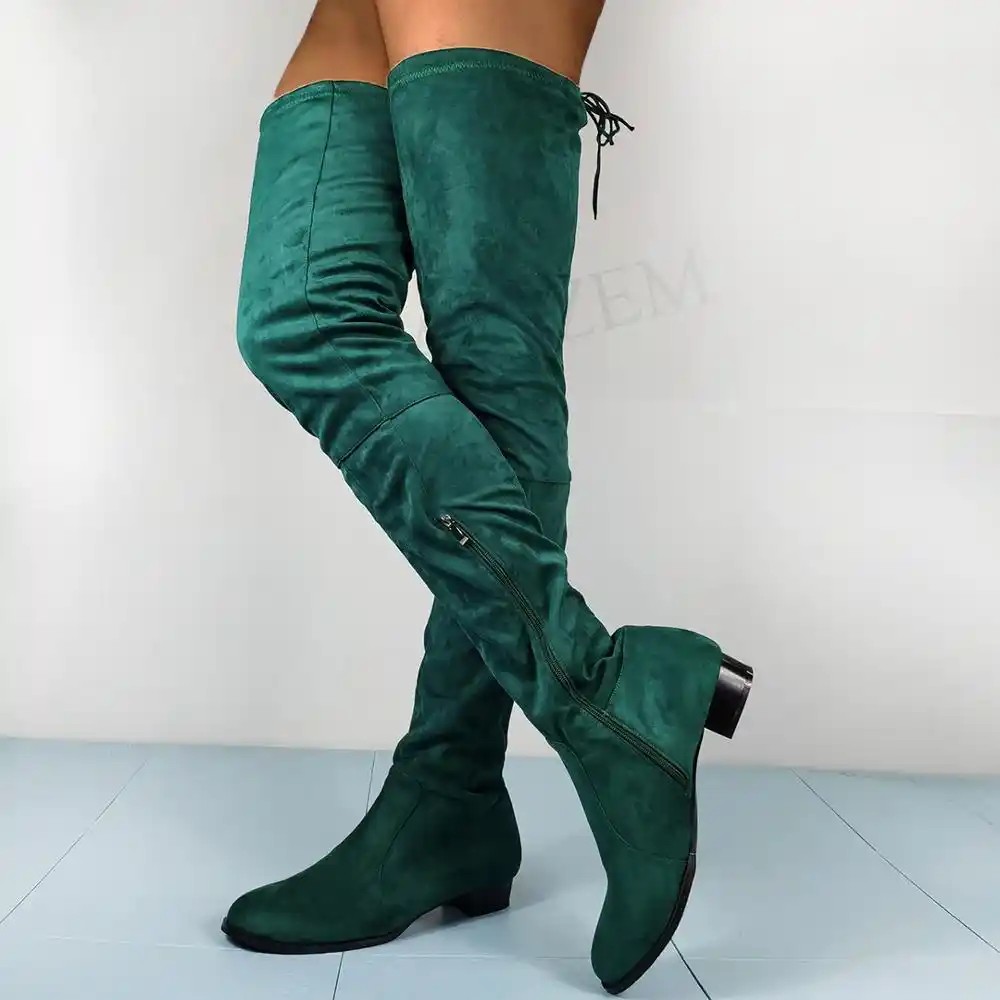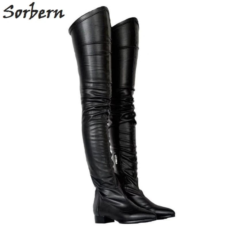 low heeled thigh high boots