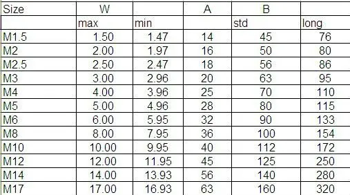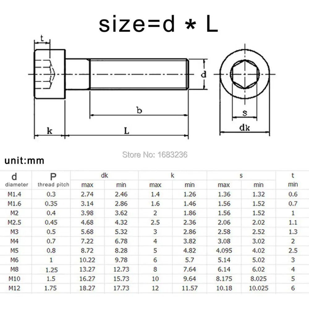 m2 screw sizes
