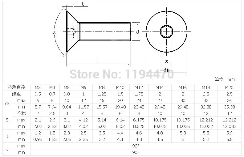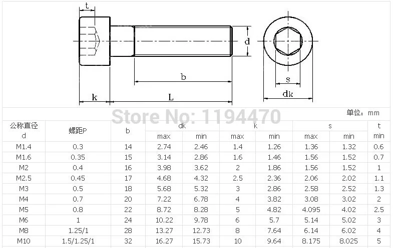 m5 bolts dimensions
