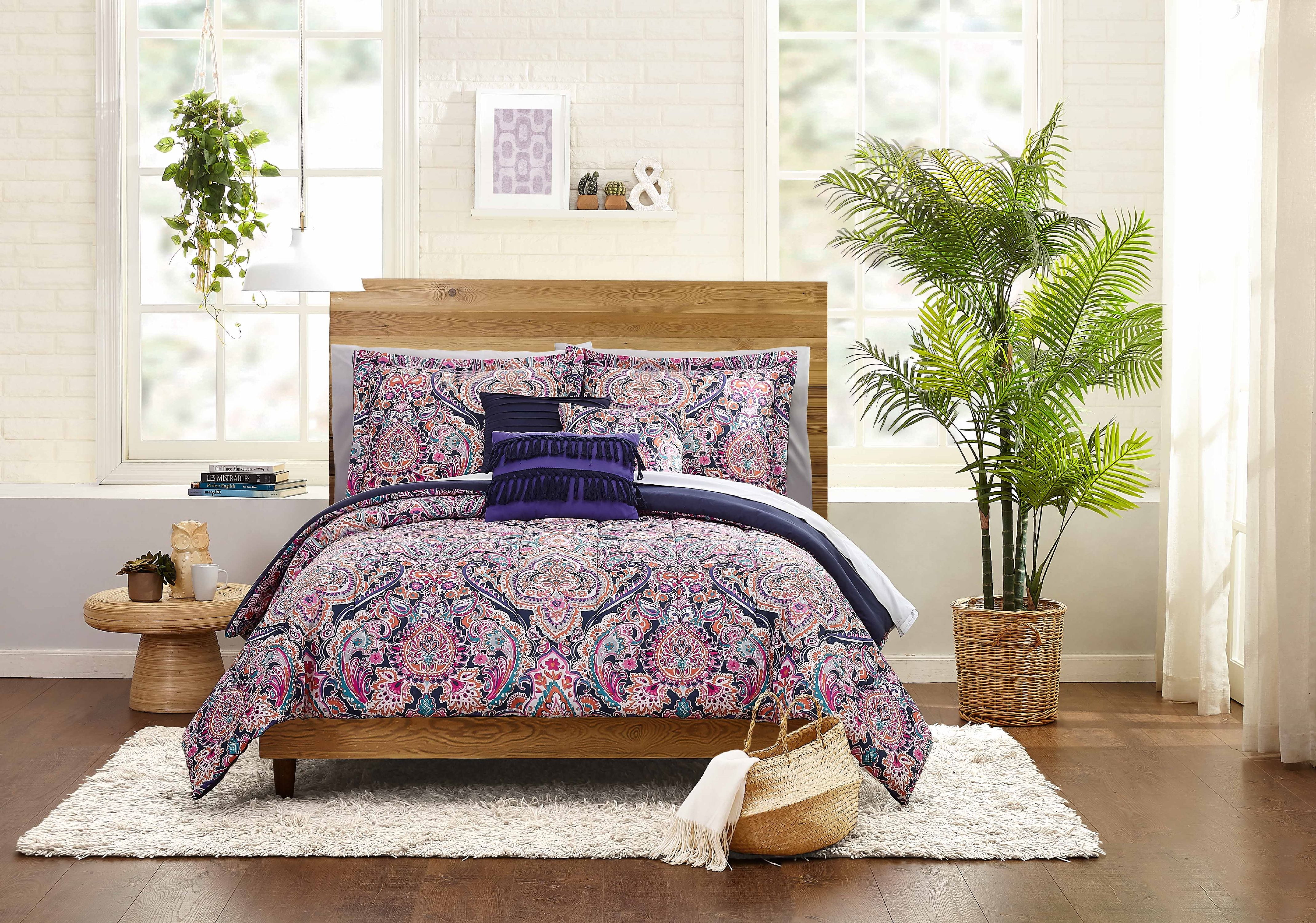 mainstays navy medallion bed in a bag