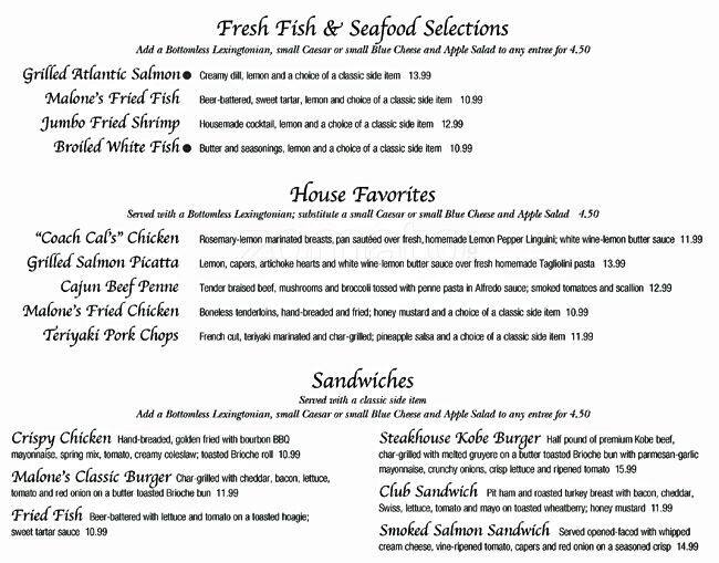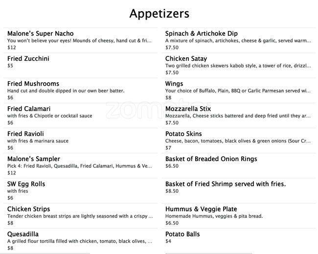 malone's menu