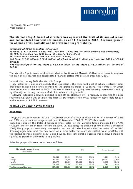marcolin sales