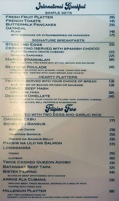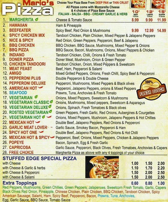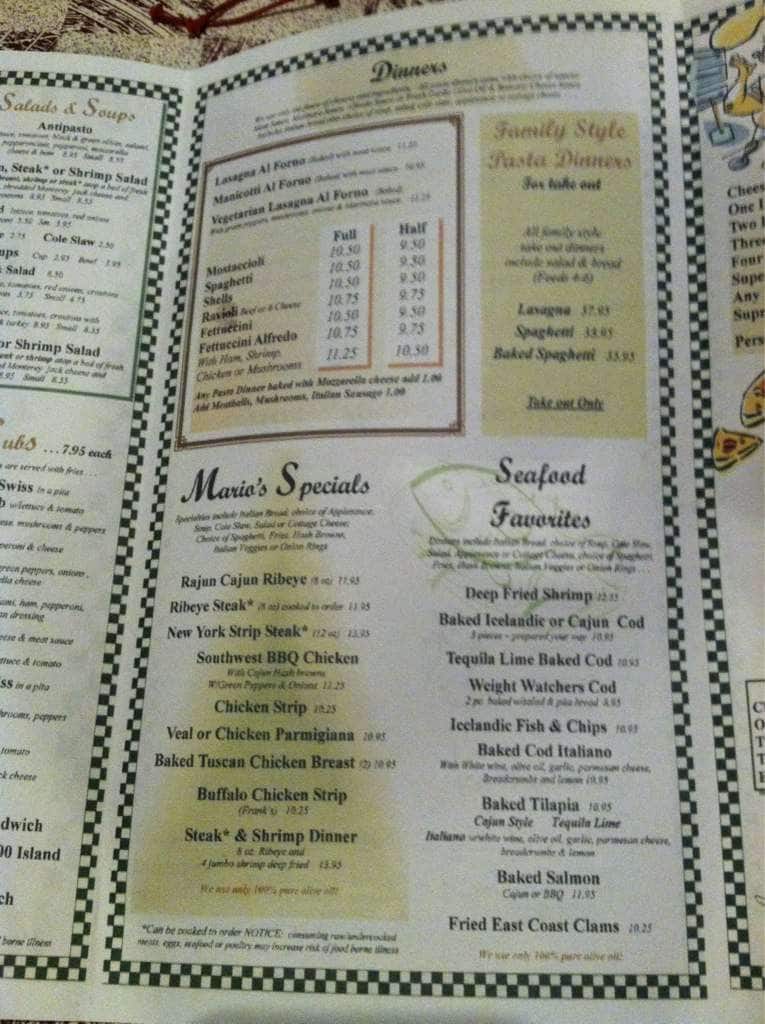 mario's restaurant menu