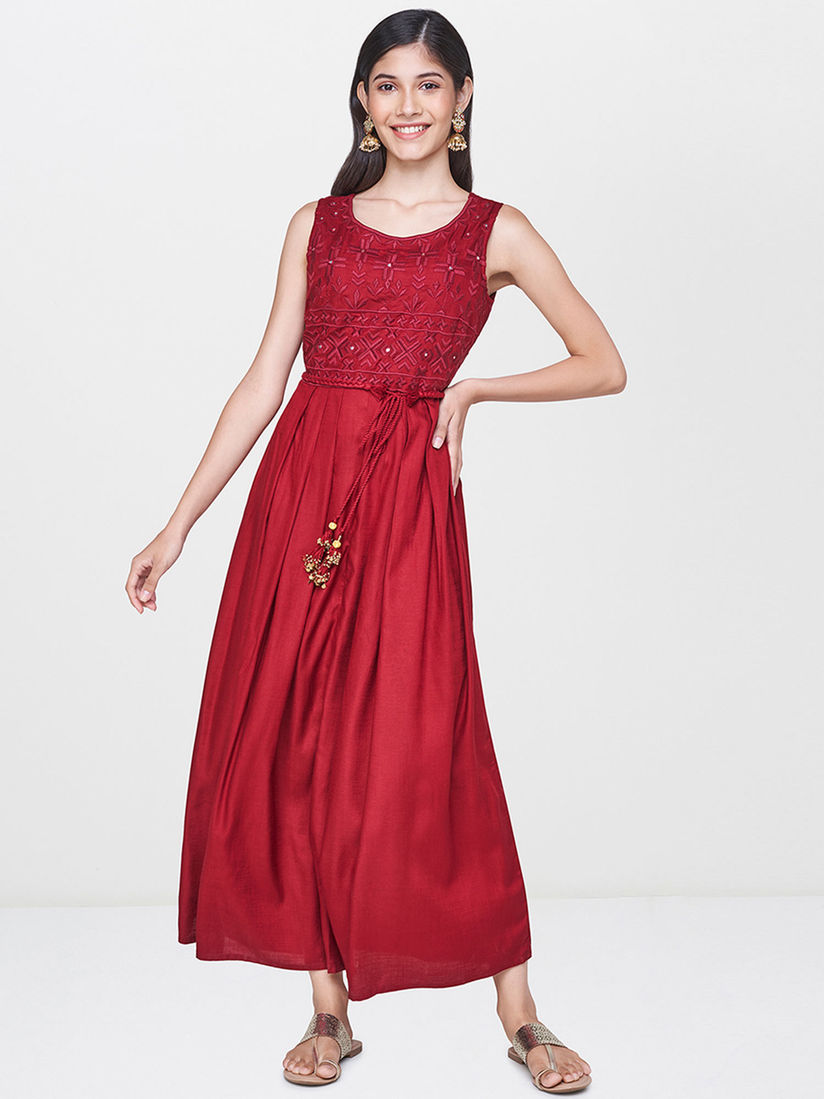 maroon gown