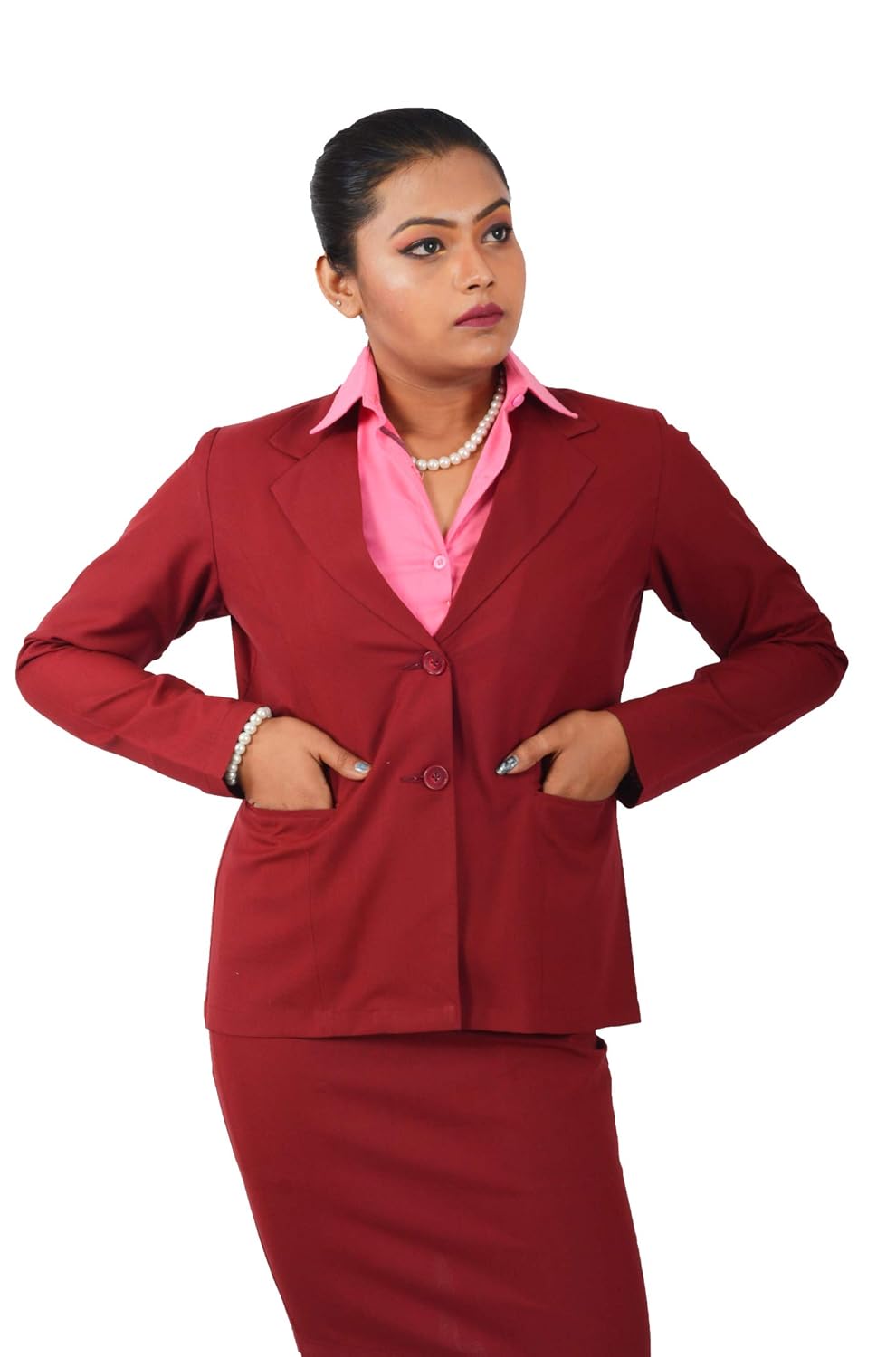 maroon suit women's