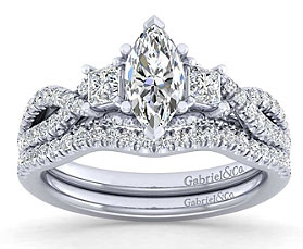 marquise engagement ring with wedding band