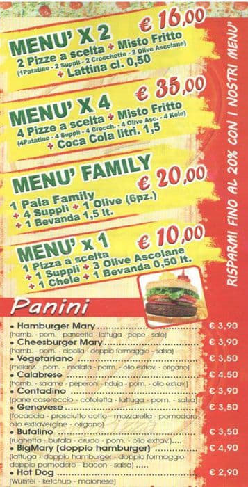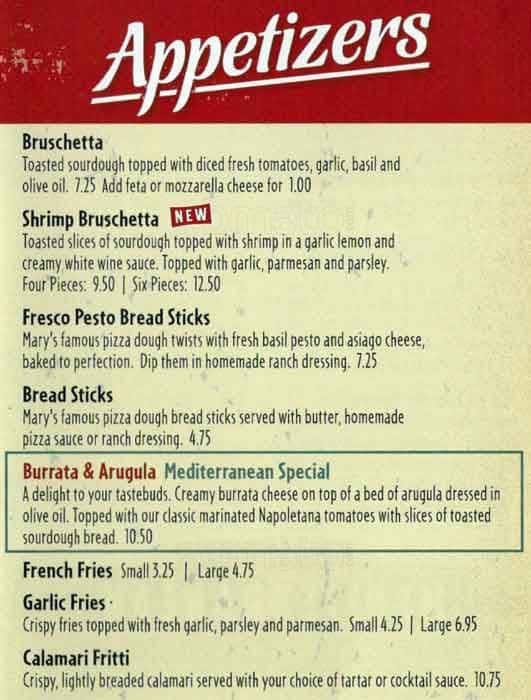 mary's pizza menu