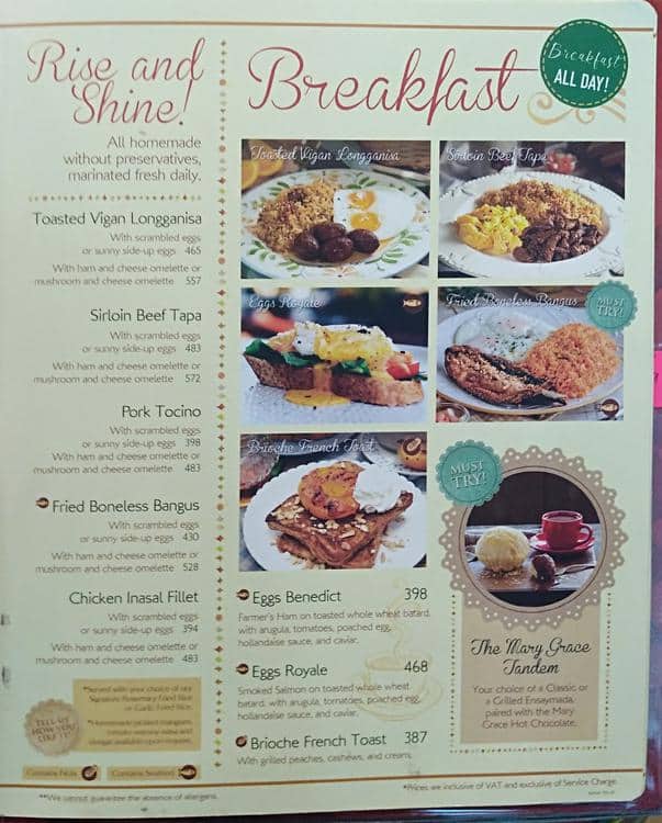 mary grace menu