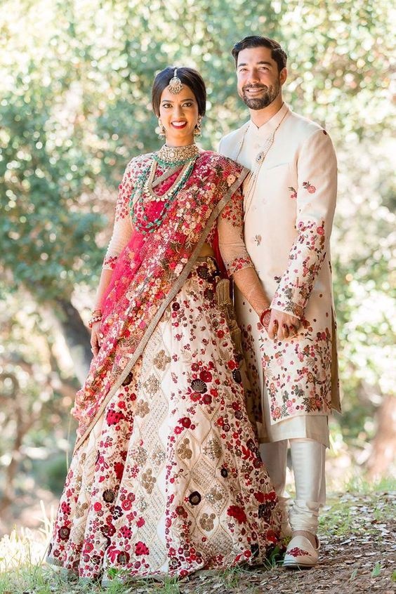 matching bride and groom dress colour combination