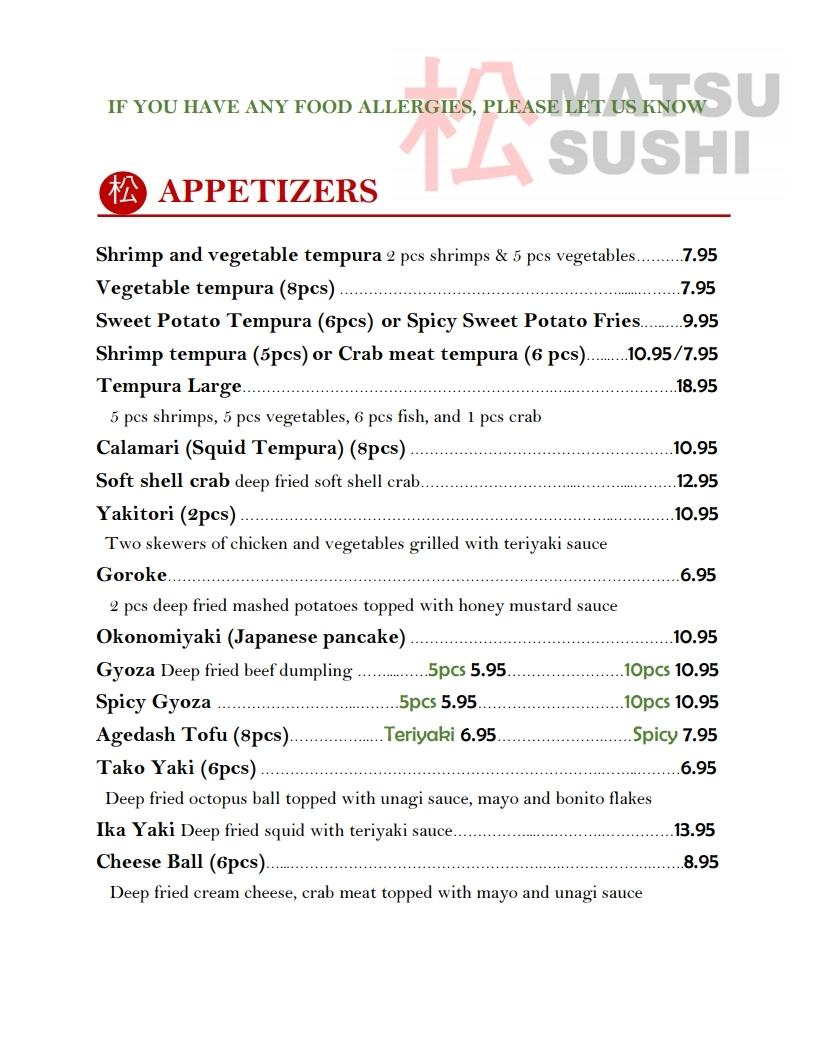 matsu sushi menu
