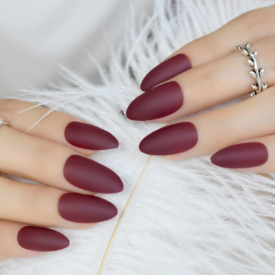 matte dark red nails