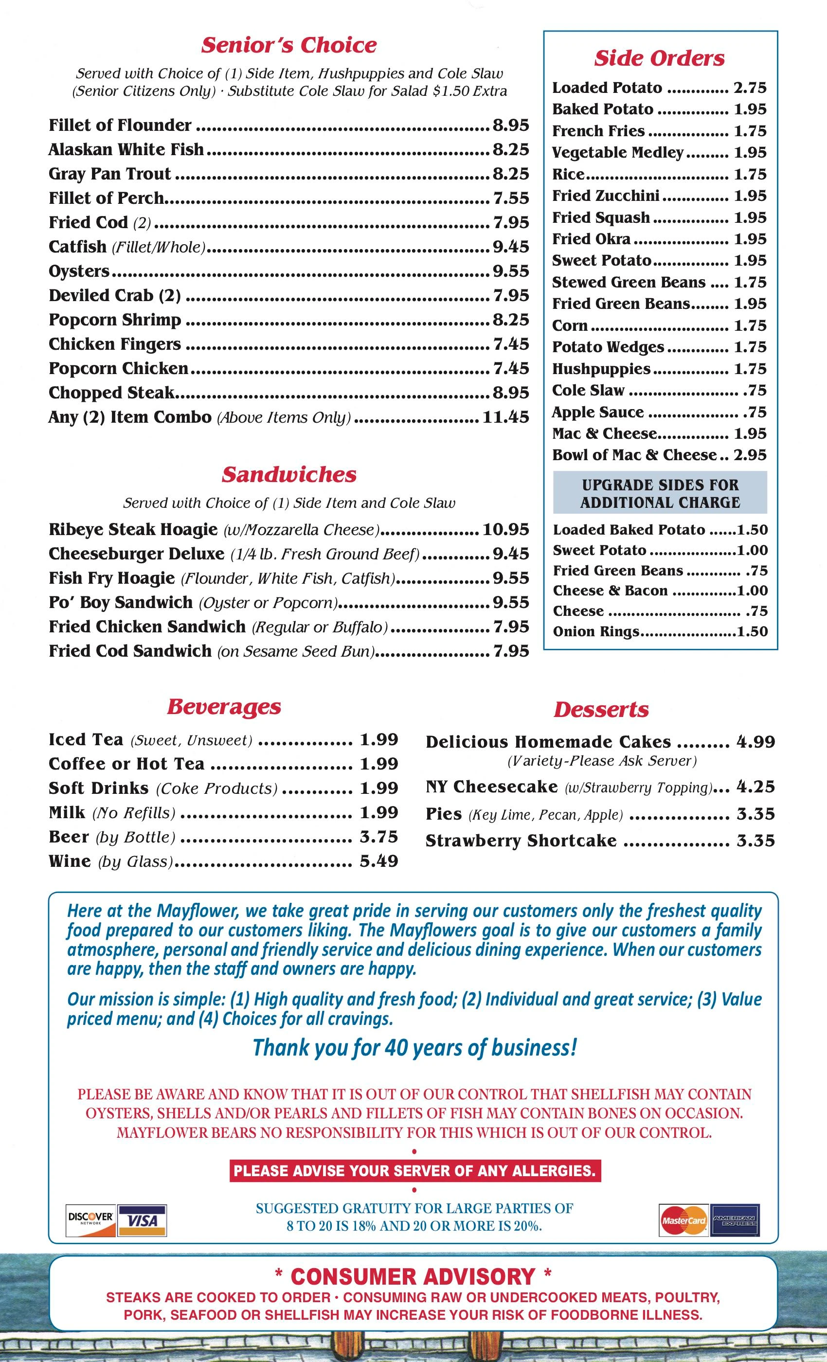mayflower seafood menu