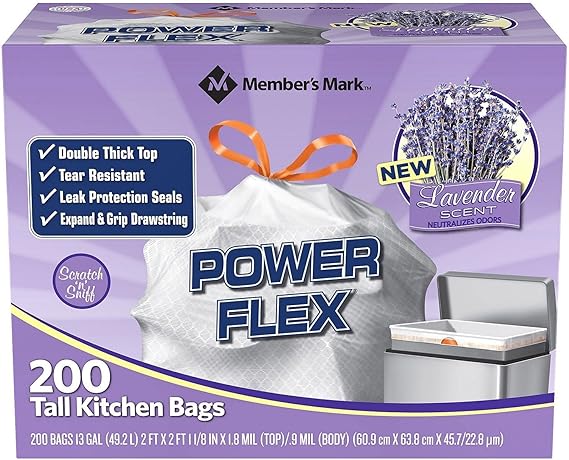 member's mark power flex tall kitchen drawstring trash bags