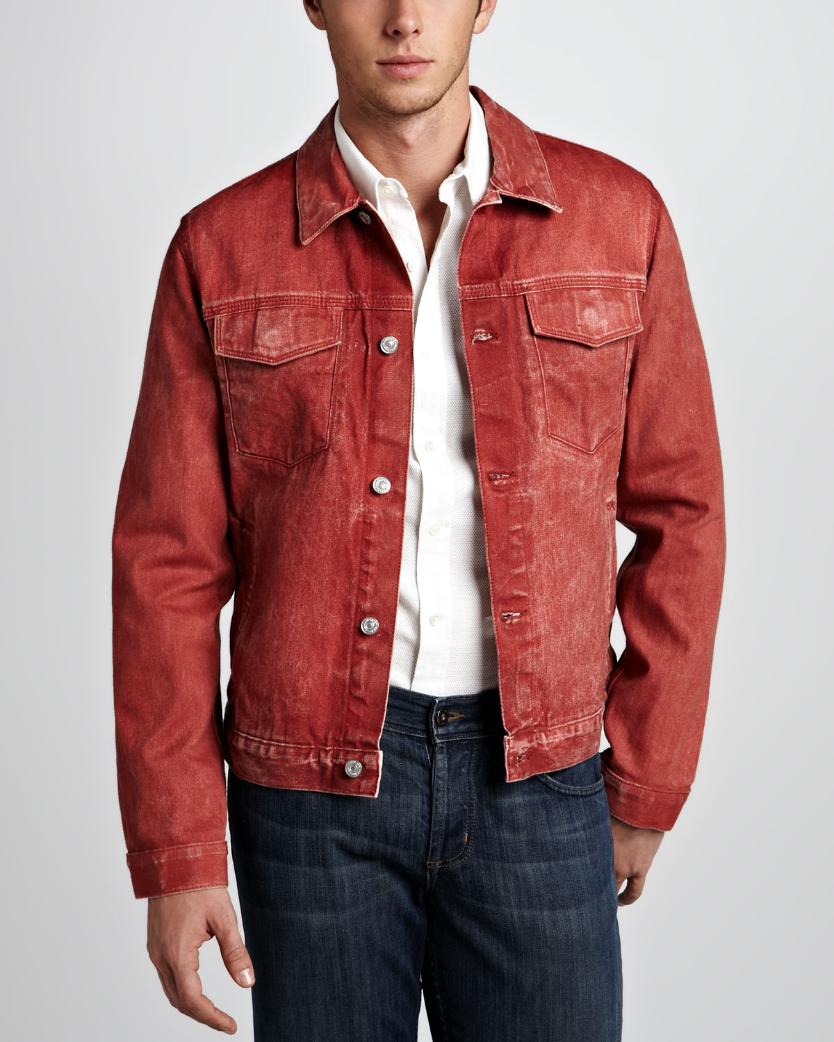 men red denim jacket