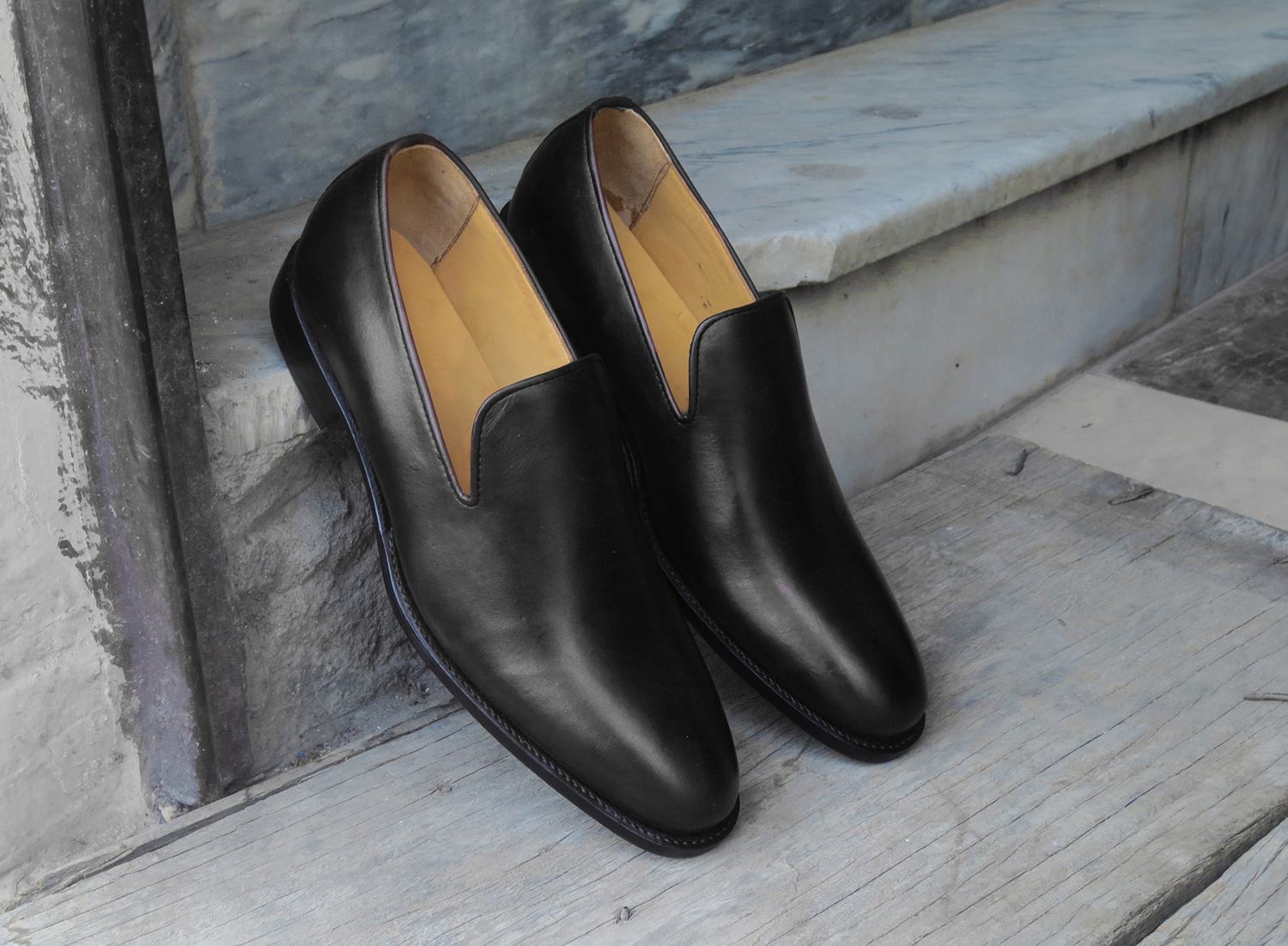 mens black leather loafers