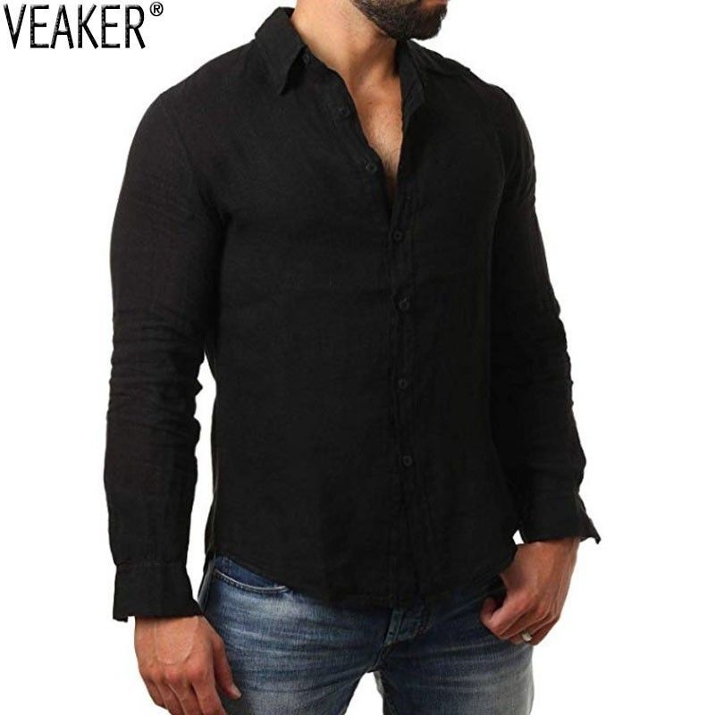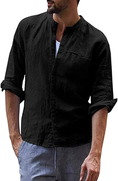 mens black linen shirt