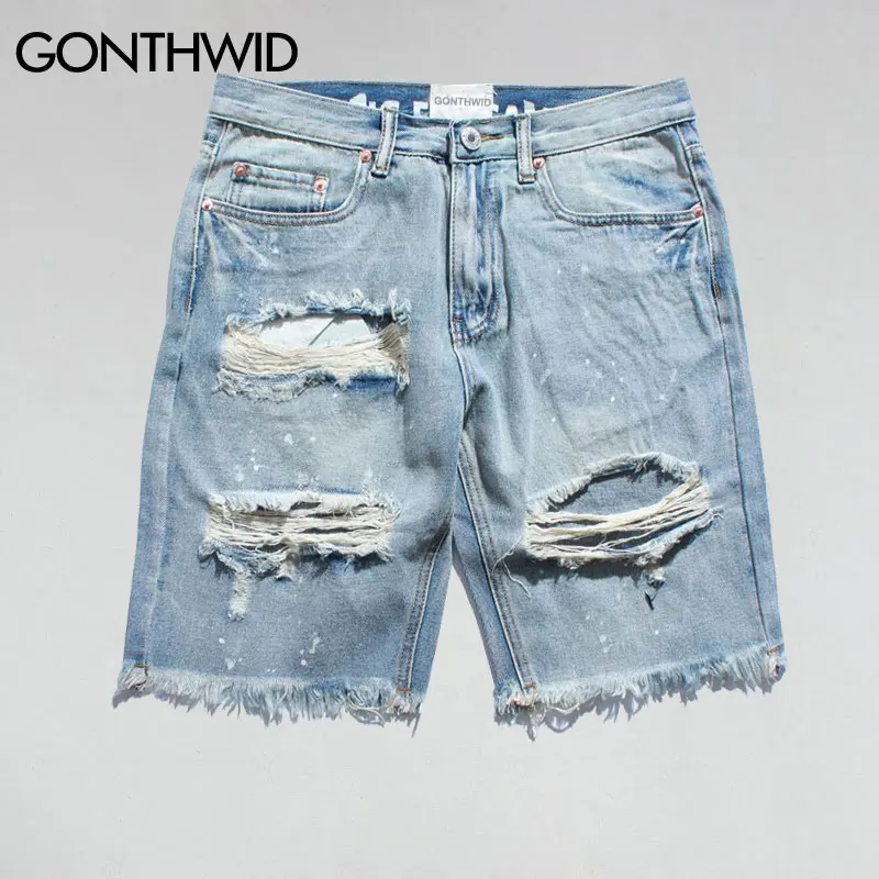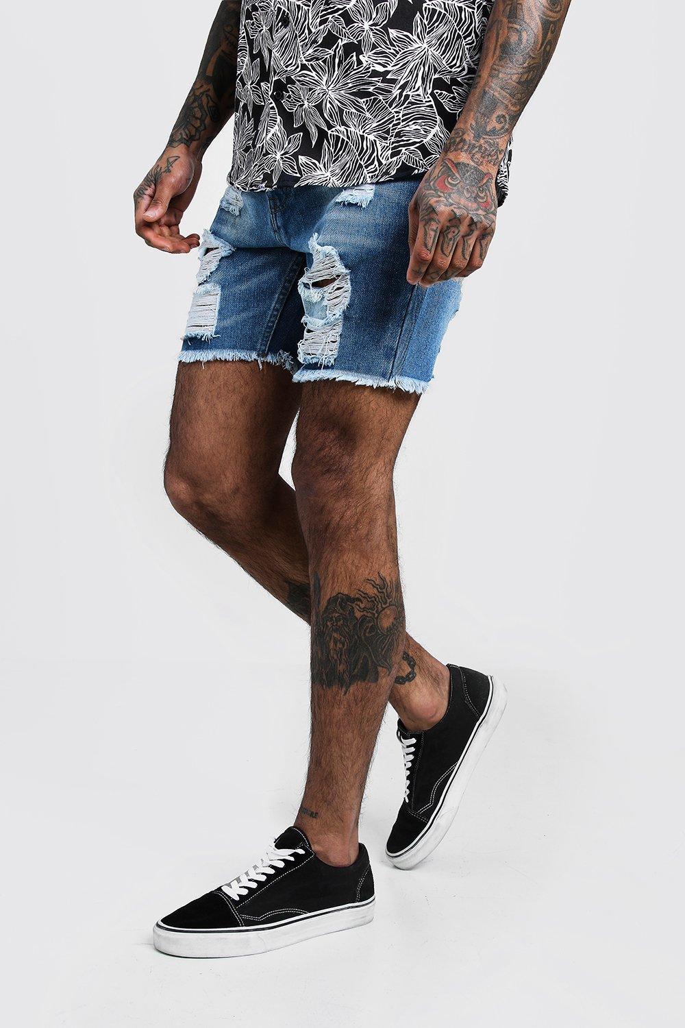 mens distressed denim shorts