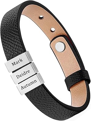 mens engraved leather bracelet