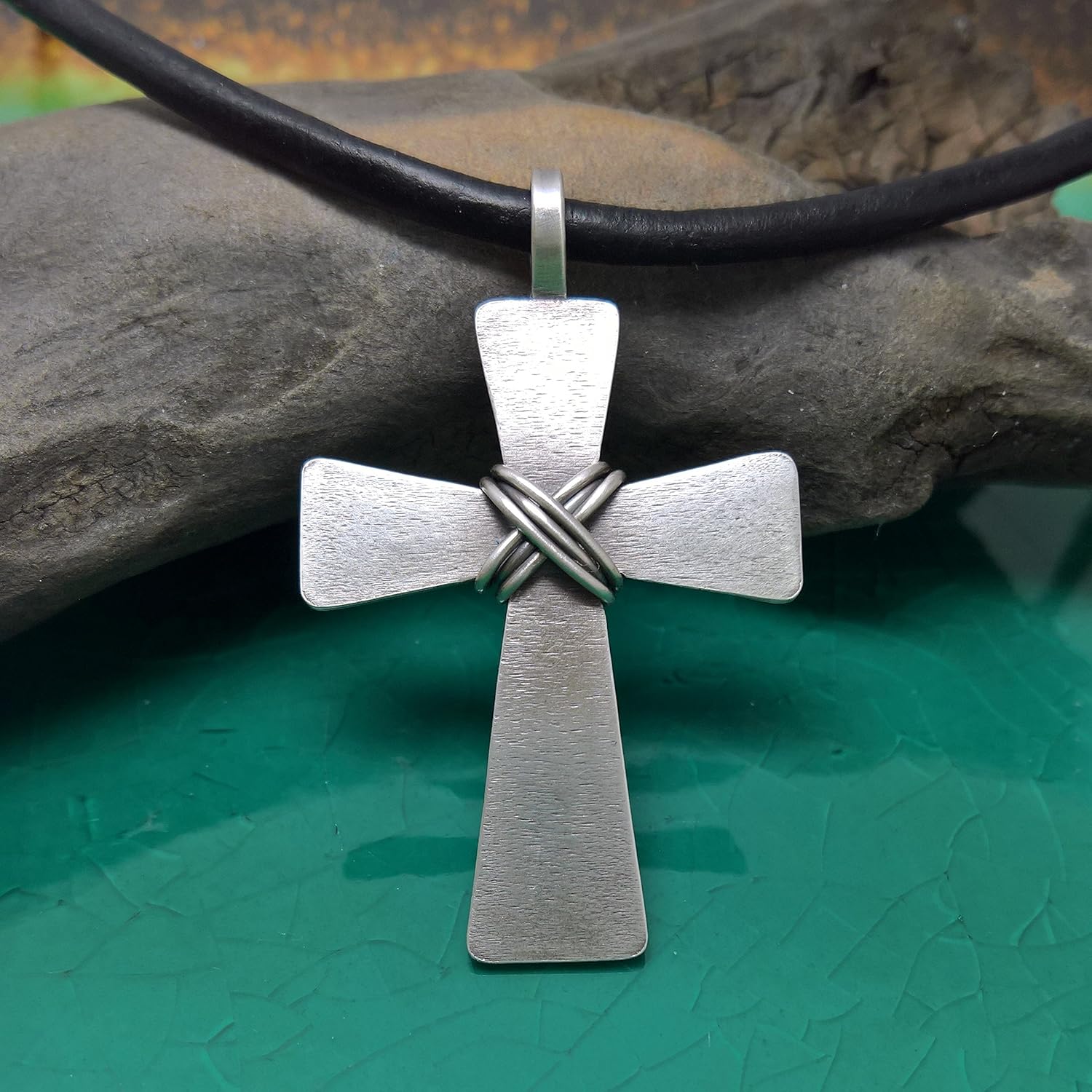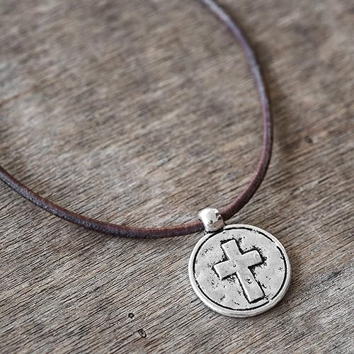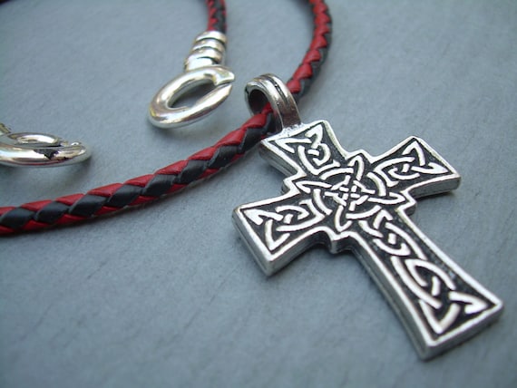 mens leather necklace with cross