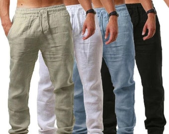 mens linen pants drawstring
