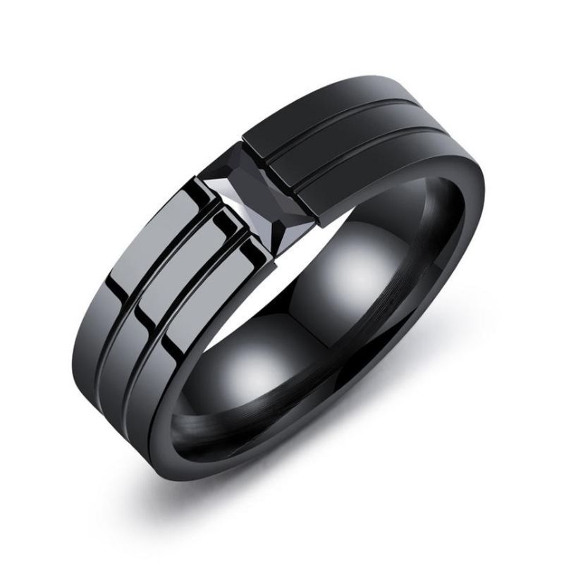 mens ring with black stone
