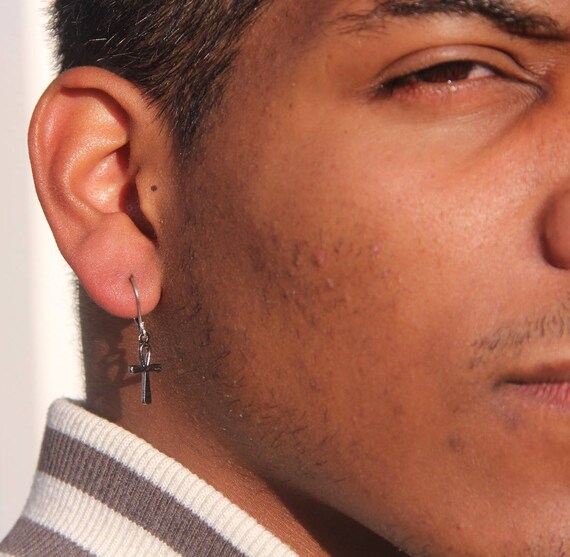 mens silver earrings hoop