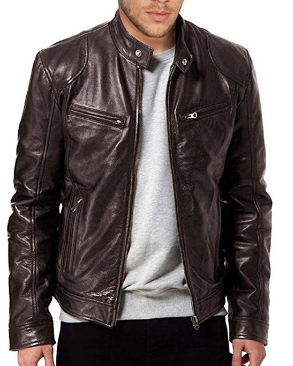 mens slim fit leather jacket