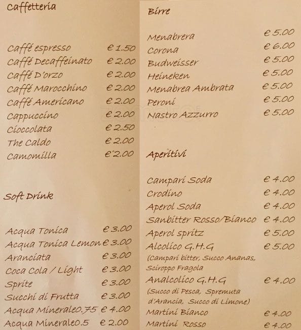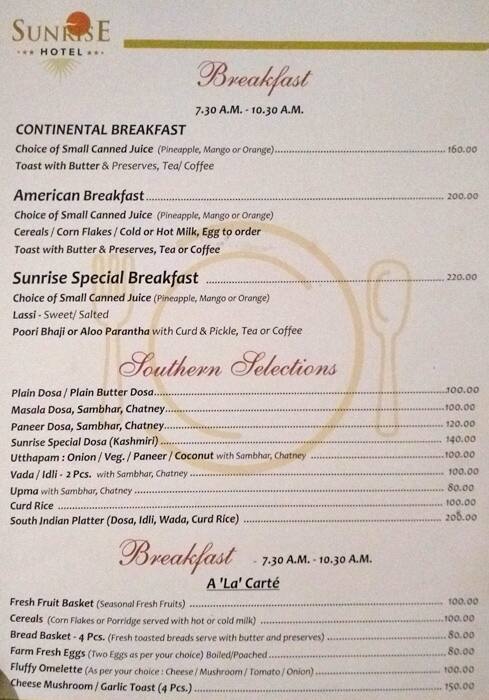 menu hotel