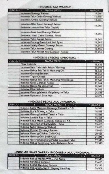 menu warunk upnormal