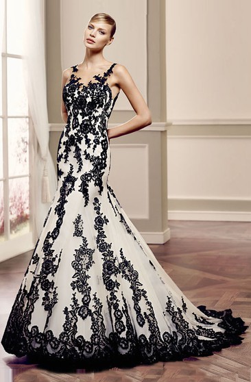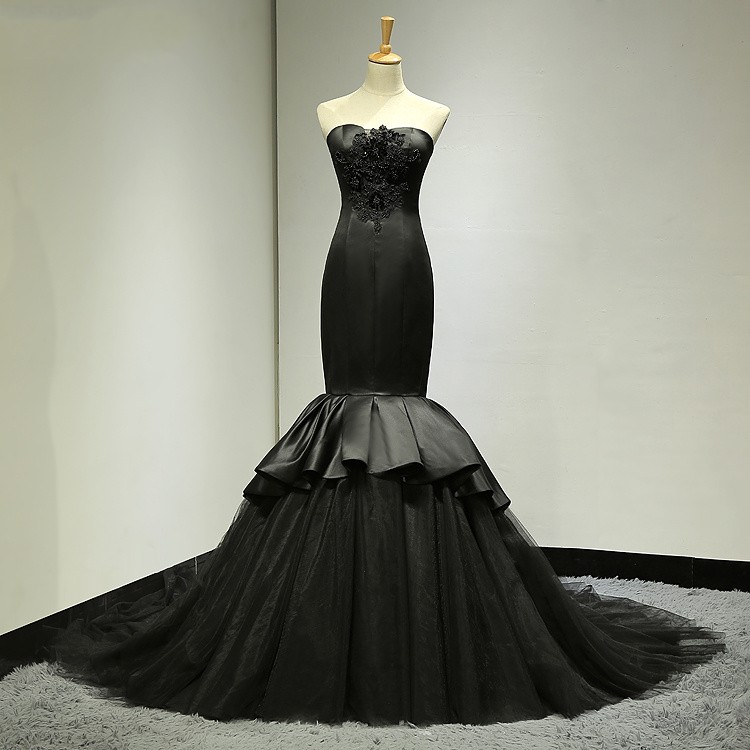 mermaid black wedding dress