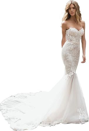 mermaid wedding dress with long train