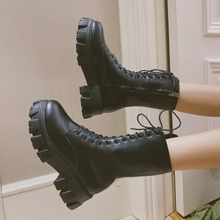 mid calf lace up booties