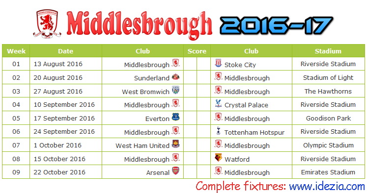 middlesbrough fc fixtures