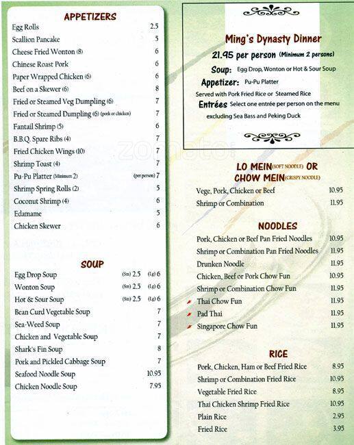 ming dynasty menu