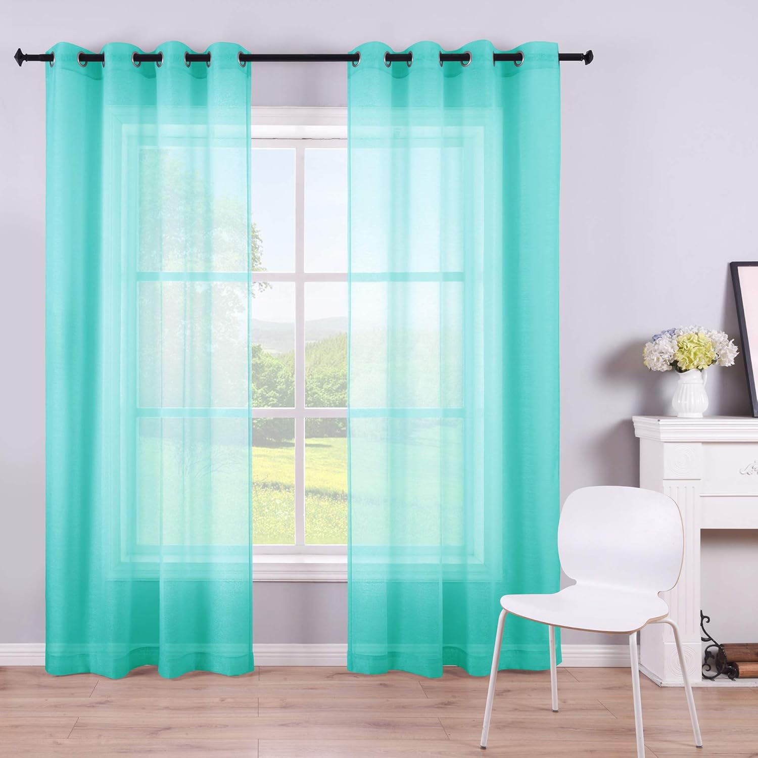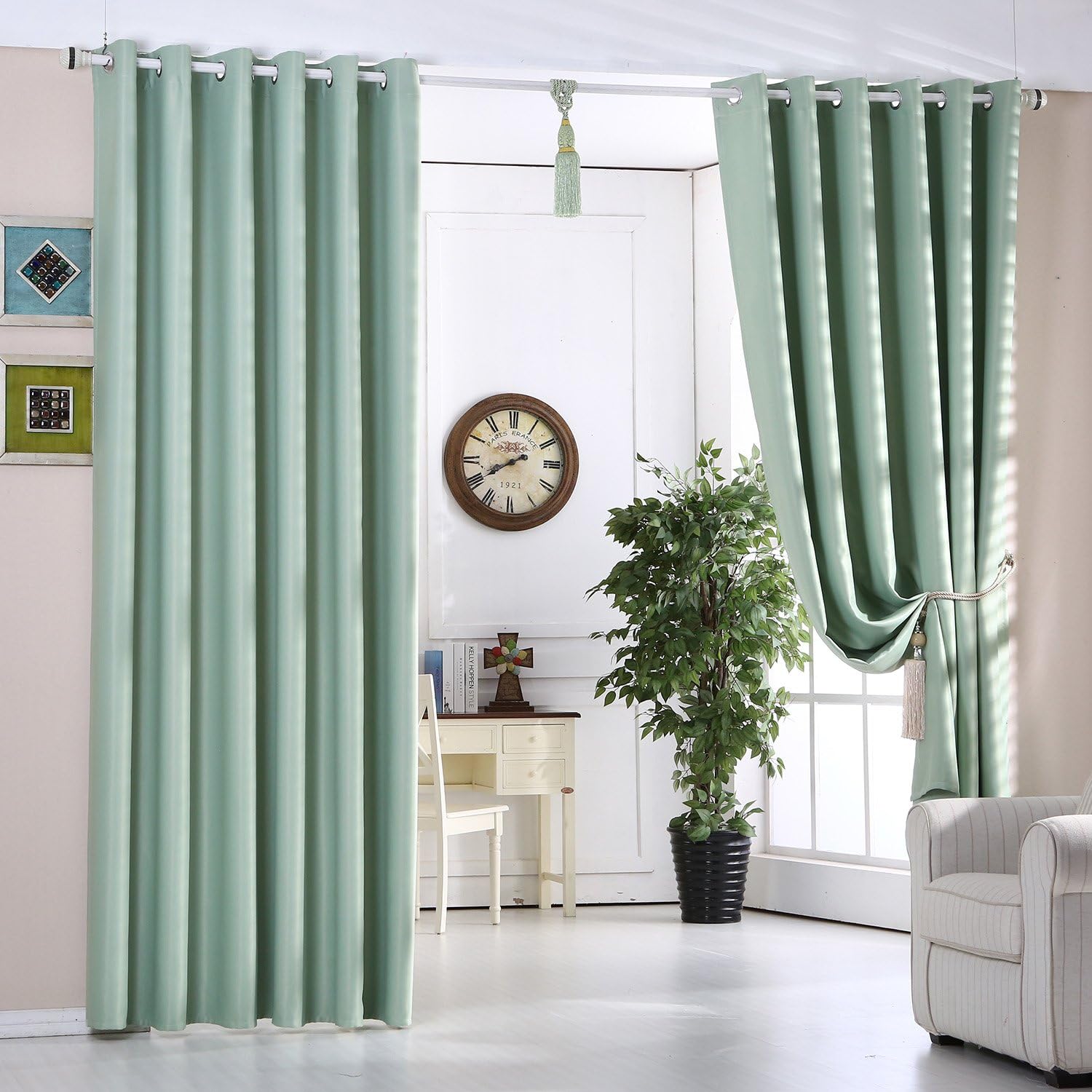 mint green curtains