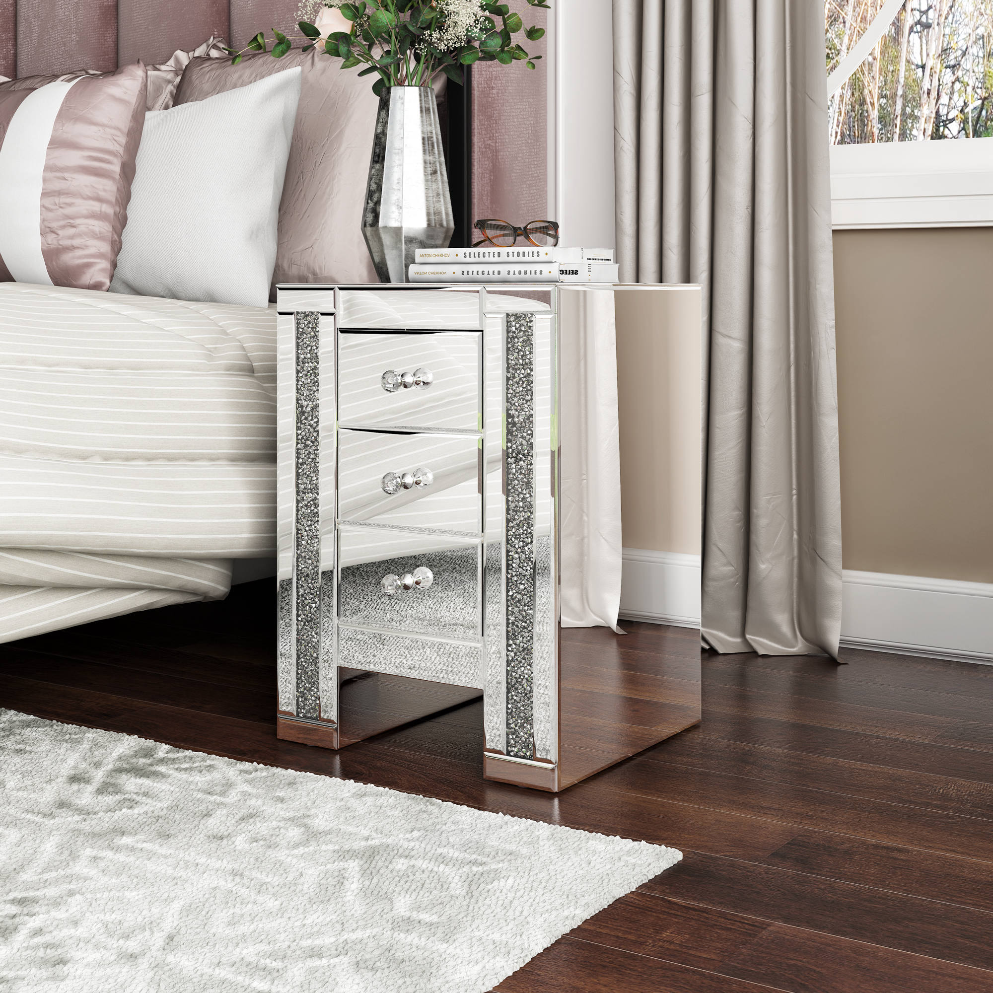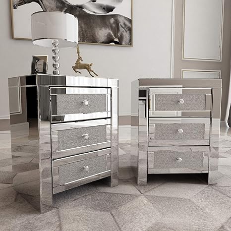 mirrored nightstand set