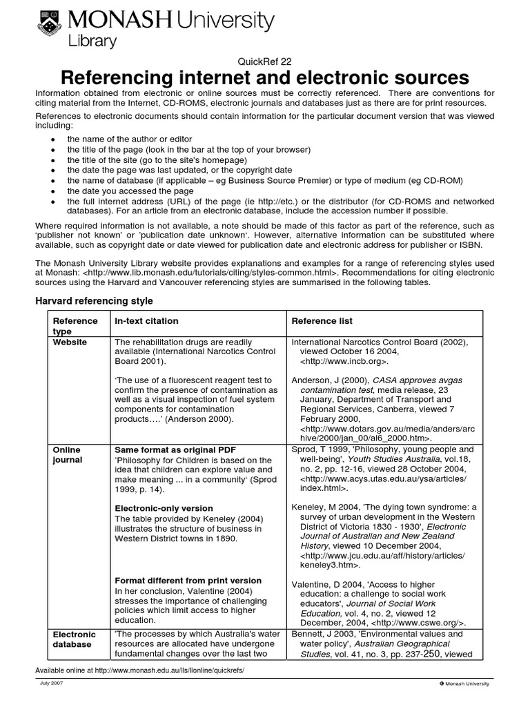 monash harvard referencing