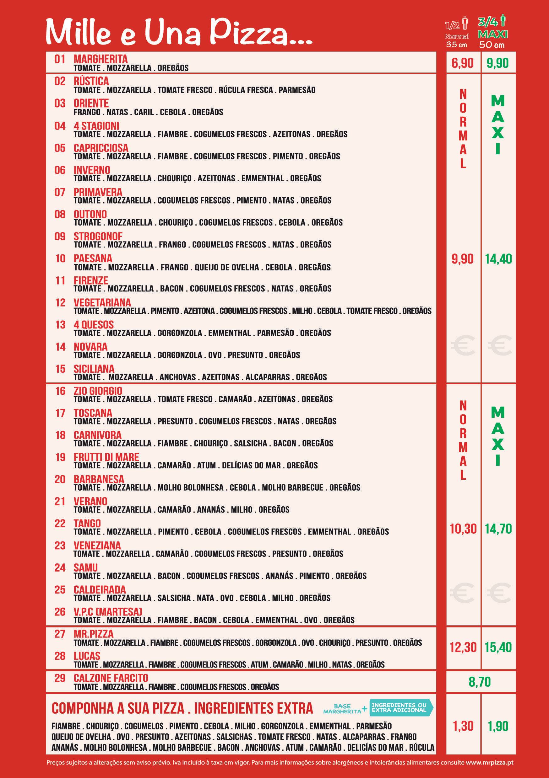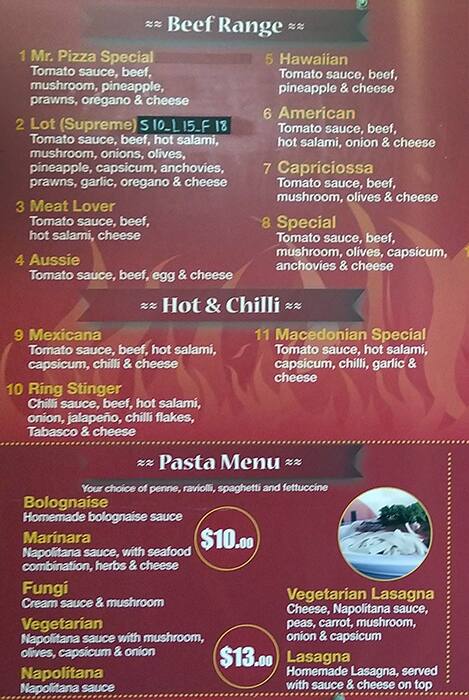 mr pizza menu