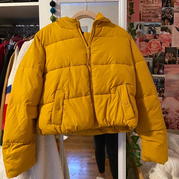 mustard puffer jacket