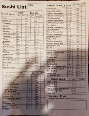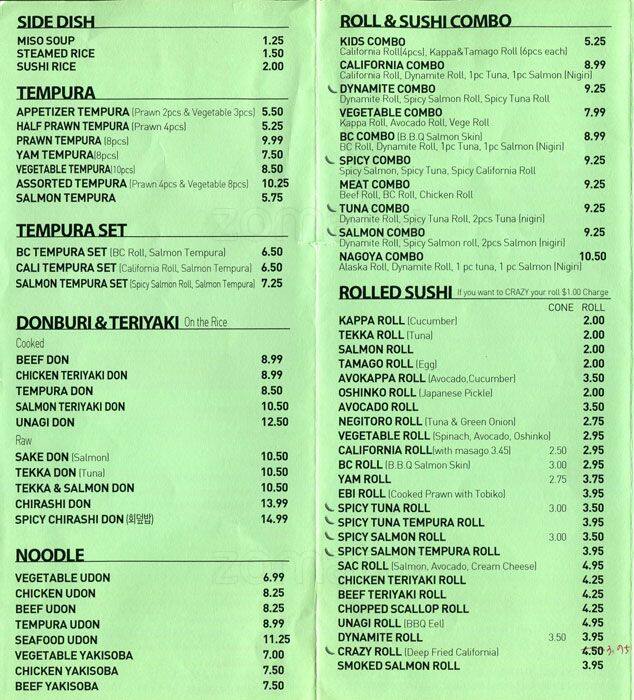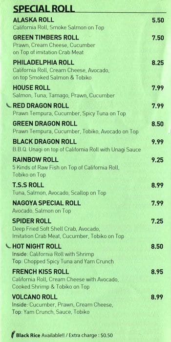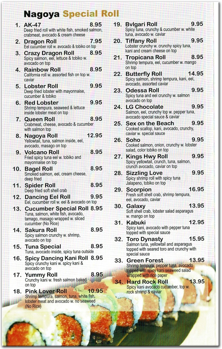 nagoya sushi menu