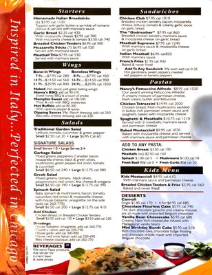 nancy's pizza menu