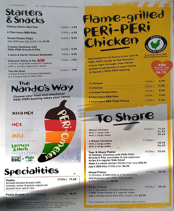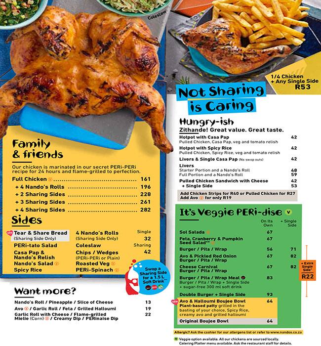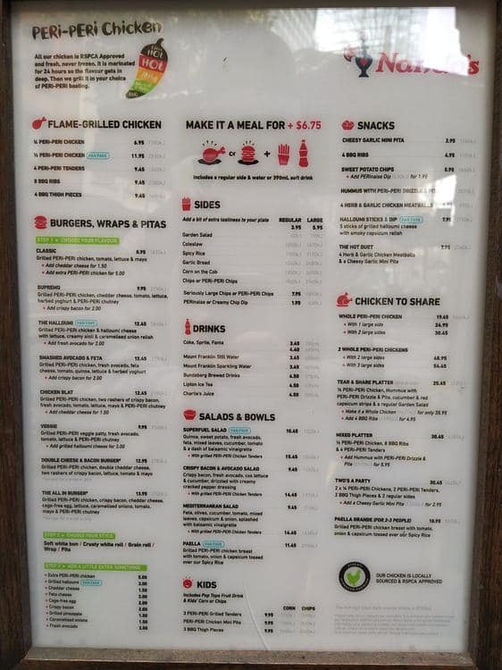 nandos delivery menu