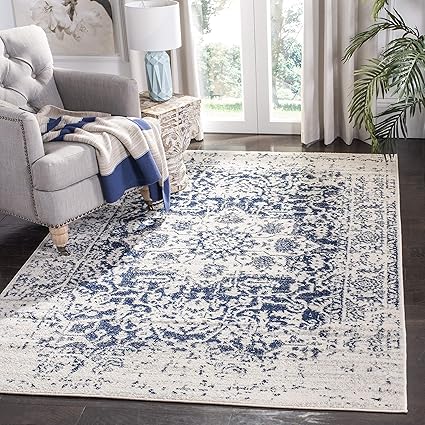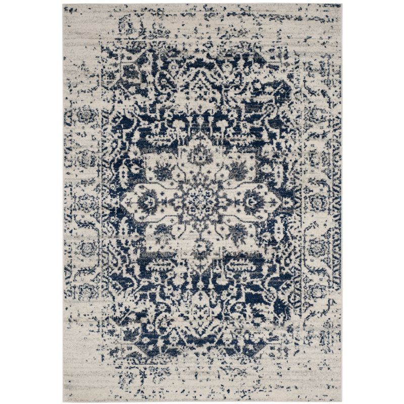 navy and cream rug