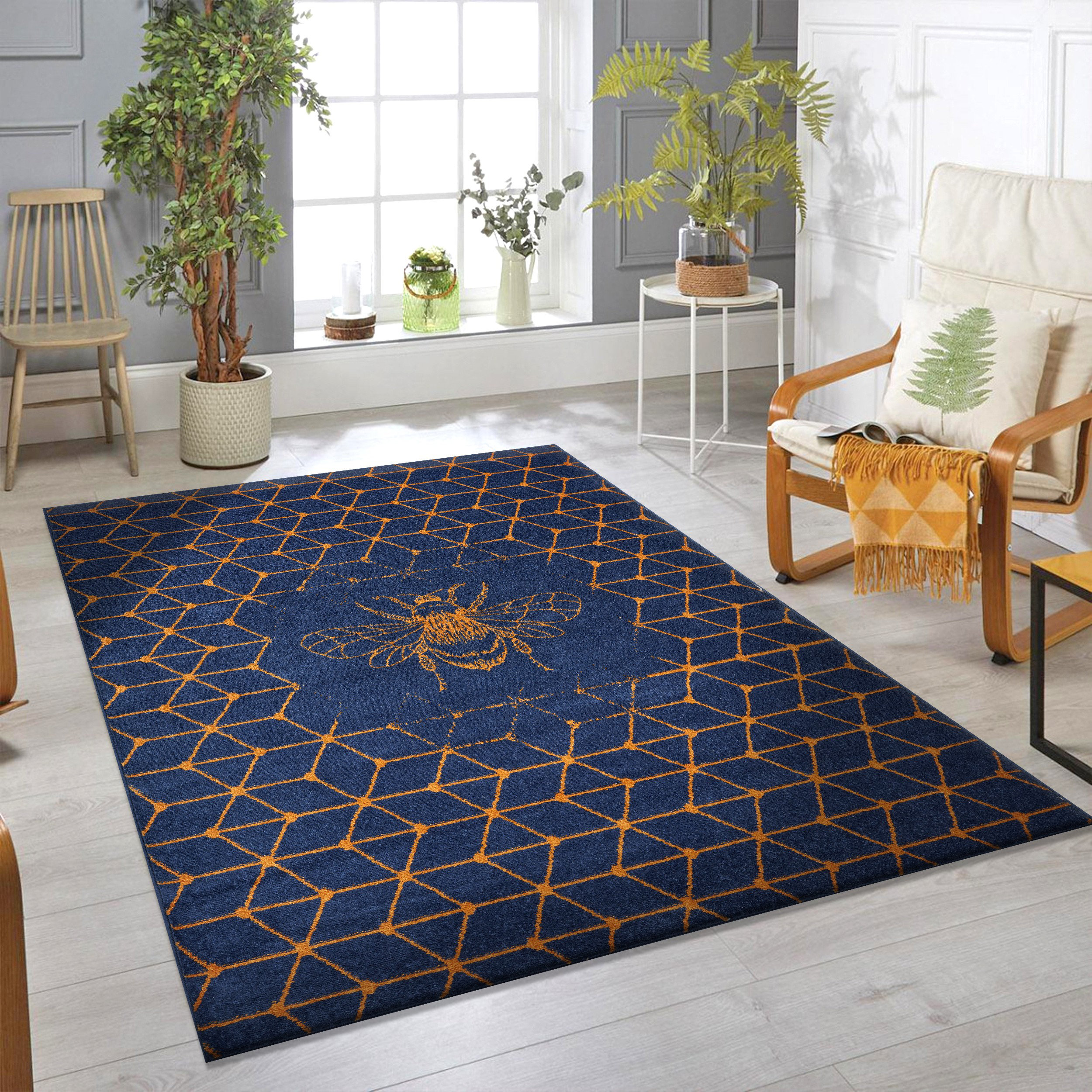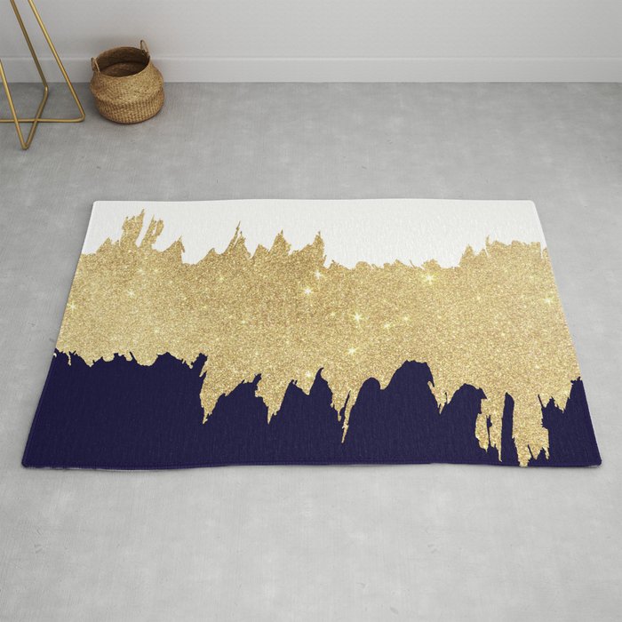 navy and gold rug