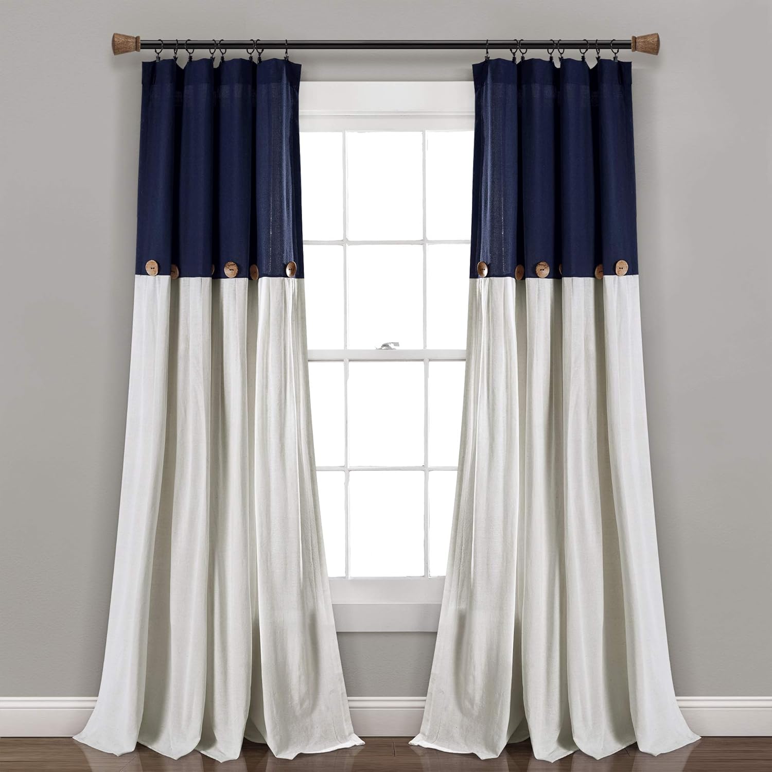 navy and white curtains