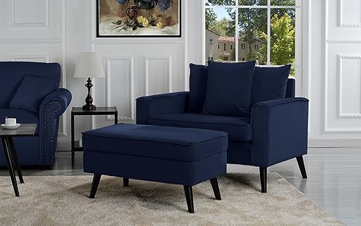 navy blue accent chair with ottoman