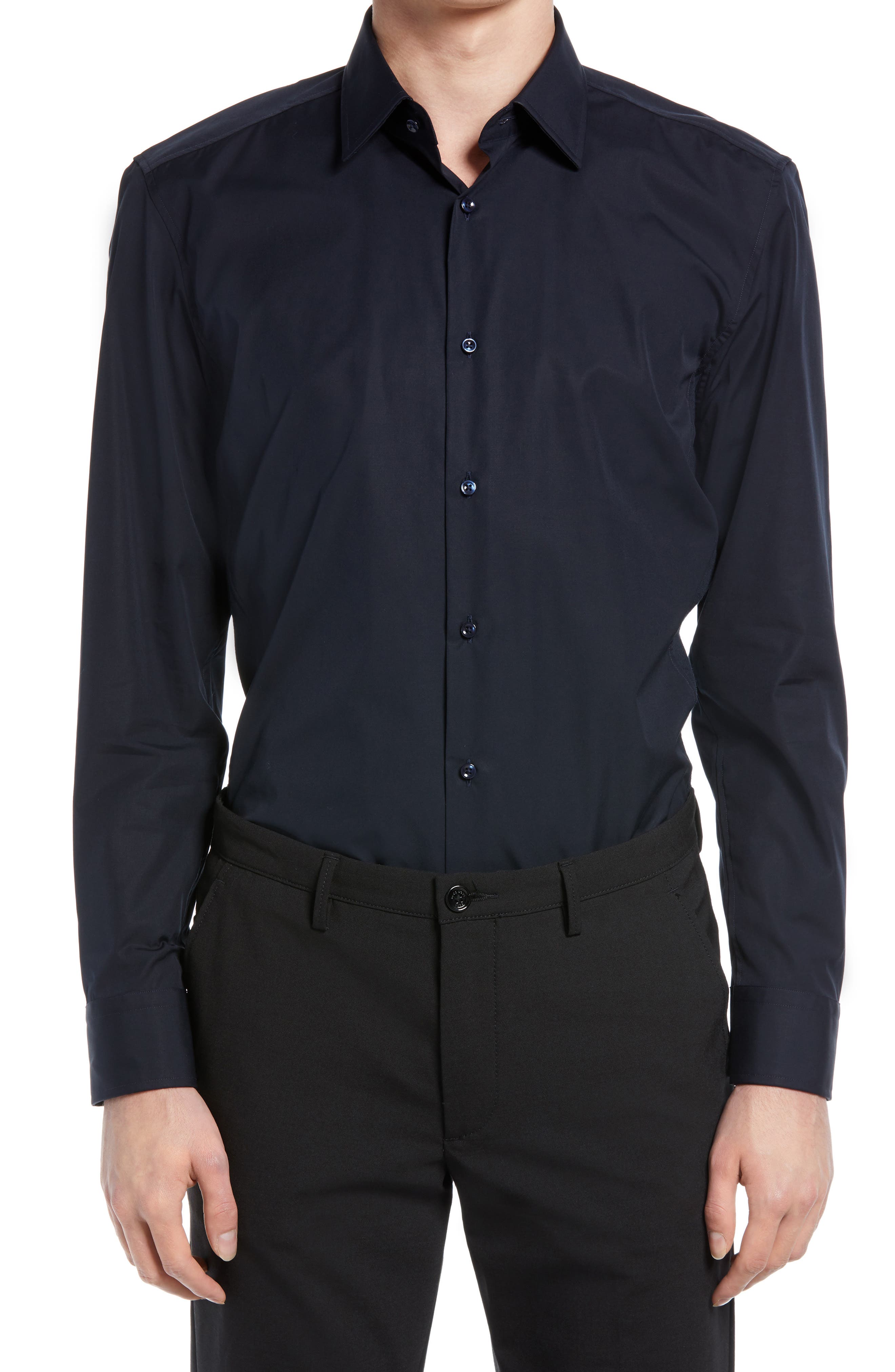 navy blue button up shirt