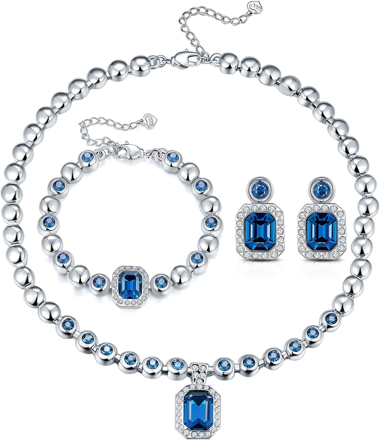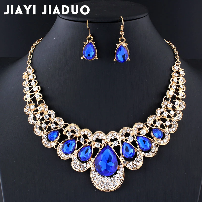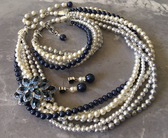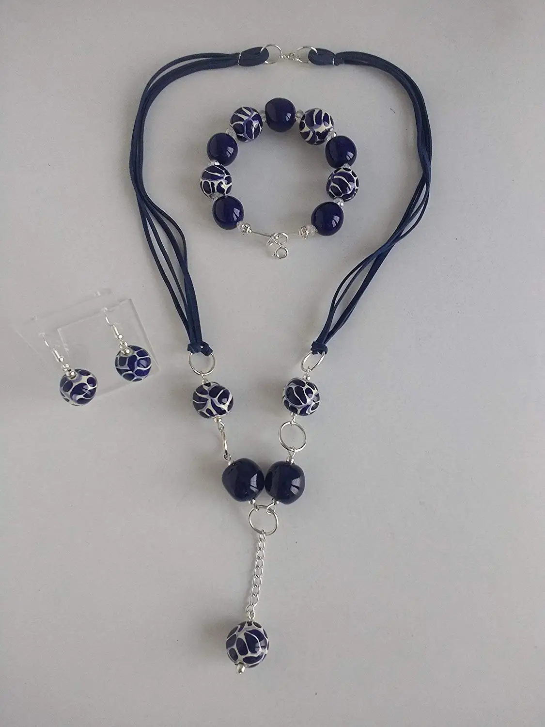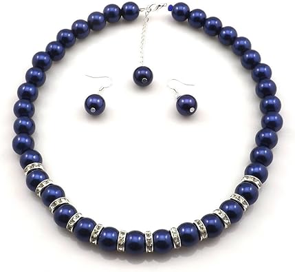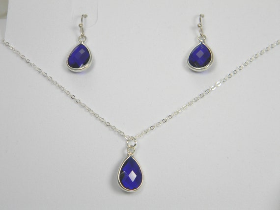 navy blue earrings and necklace set
